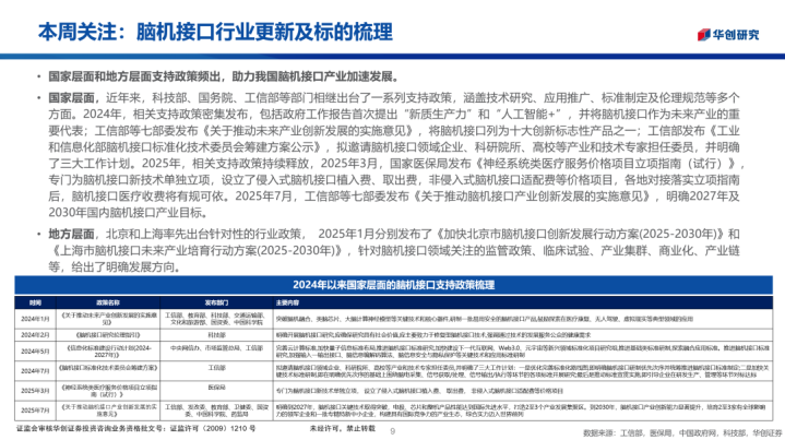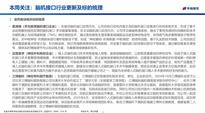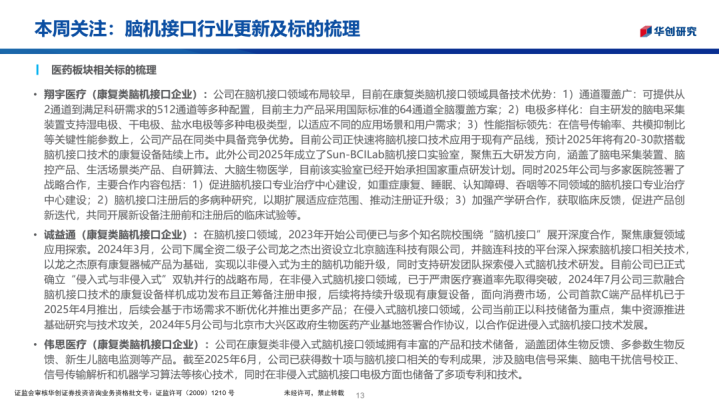 > 华创医药周观点: 脑机接口行业更新及标的梳理 2025/08/09